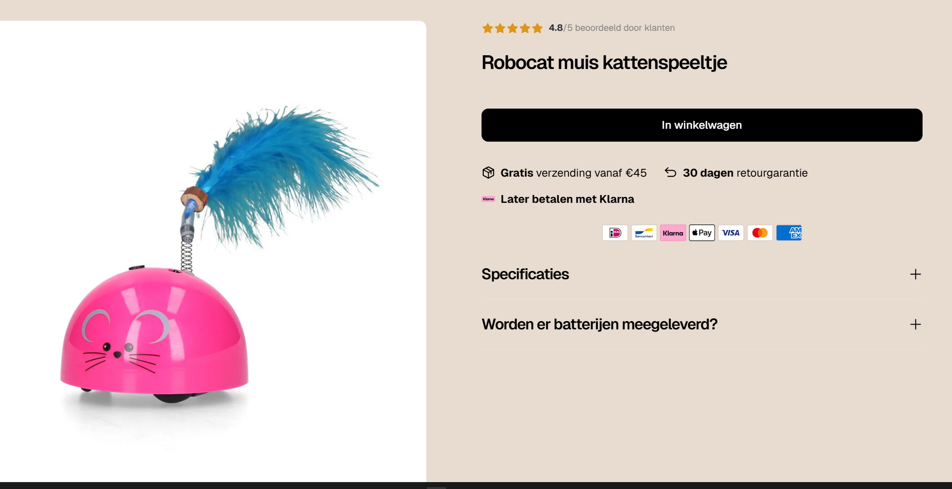 Daag uw kat uit met de Robocat muis kattenspeeltje in 3 hippe kleuren